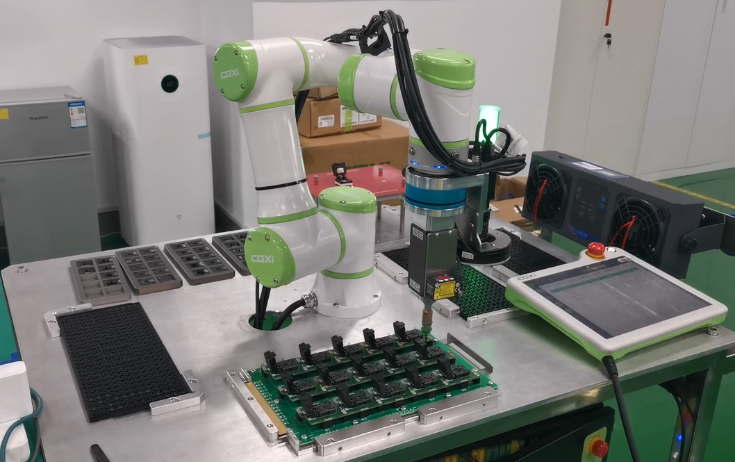 芯片封装后,需要对其进行性能测试,测试过程中,利用协作机器人进行Tray盘和Socket间的芯片移载,从而完成自动测试功能。